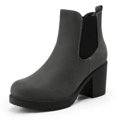 DREAM PAIRS Women's Chunky High Heel Chelsea Ankle Boots Stylish Suede Fashion Shoes,Size 9,Grey,FRE