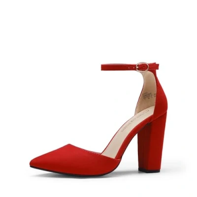 DREAM PAIRS Women's Coco High Heels Chunky Block Pumps Pointed Closed Toe Ankle Strap Dress Shoes,Size 7.5,Red/Suede,Coco