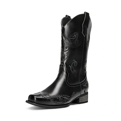 DREAM PAIRS Women's Fashion Cowboy Boots Waterproof Mid Calf with Beautiful Embroidered Stitching Comfortable Square Toe Western for Parties and Dance Ball,Size 6.5,Black,SDMB2220W
