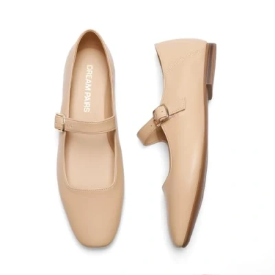 DREAM PAIRS Women's Flats Square Toe Mary Jane Comfortable Casual Slip On Dress Shoes Ballet with Buckle Strap Business Work Office Shoes,Size 7.5,Nude,DWUMFA2520