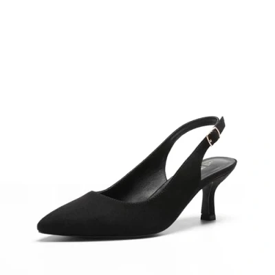 Pointed Toe: The pointy toe and open-back design create the illusion of an accentuated leg line. These women’s pumps are designed to exude elegance and elevate your look. 2.36-Inch Kitten Heel: These pumps are set on a heel that strikes the perfect balance between comfort and height. Whether you're heading to the office, a party, or a special occasion, these kitten heels provide secure footing that is comfortable for walking. Vegan Leather Upper: Crafted with soft materials, these women’s slingback pumps offer a plush feel that makes it extra comfortable to wear. Embrace versatility with these slingback pumps that are designed for work, commuting, parties, weddings, and family gatherings. Non-Slip Outsole: Offers durability and stability so you can step out on any occasion with confidence. Padded Footbed: Covered with smooth vegan leather the 4mm high-density latex, enhances comfort by effectively cushioning and relieving pressure.