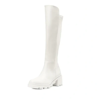 DREAM PAIRS Women's Knee High Boots, Comfortable Chunky Block Heel Pointed Toe Pull On Side Zipper Suede Slouch Riding Boots for UK Ladies,Size 7,White,SDKB2310W