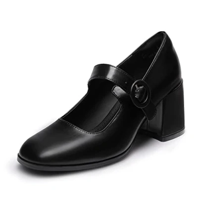 CUSHIONED FOOTBED Built with a soft PU coated latex footbed that provides long-lasting comfort with every step. Stable hold: these fashionable heel pumps on a 7.1 cm block heel increase your height and provide sufficient support. In addition, a non-slip TPR outsole ensures solid foot safety when walking. SLEEK SILHOUETTE Made from a glossy patent upper that delivers a polished, eye-catching style. MARY JANE STYLE Designed with an adjustable buckle strap, these Mary Jane pumps for women elevate your entire ensemble and provide a snug fit. DRESSING TIPS These stylish pumps for women go well with dresses, skirts or wide leg pants and are suitable for party, date night or daily wear.
