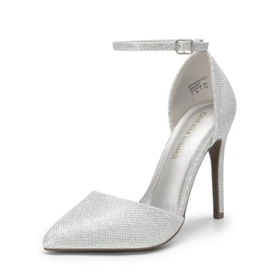 DREAM PAIRS Women's Pointed Toe Ankle Strap High Heels Pumps Dress Court Shoes Oppointed_Lacey,Size 5.5,Silver/Glitter,Oppointed_Lacey