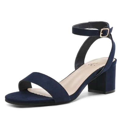 DREAM PAIRS Women's Sandals Open Toe Ankle Strap Low Block Chunky Heels Party Dress Pumps Shoes CARNIVAL,Size 8,Navy/Suede,CARNIVAL