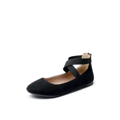 DREAM PAIRS Women's Sole_Stretchy Black Elastic Ankle Straps Ballet Flats Shoes Size 7.5 US/ 5.5 UK