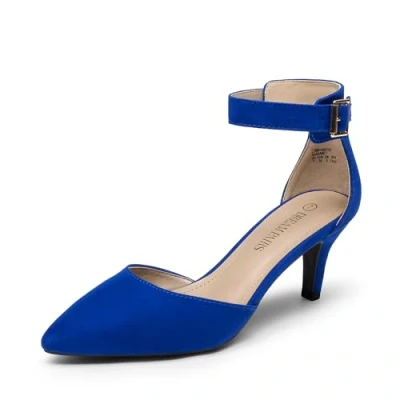 DREAM PAIRS Womens Court Shoes Pointed Toe Low Kitten Heel Ladies Pumps Ankle Strap Dress Sandals,Size 7,Royal/Blue,LOWPOINTED