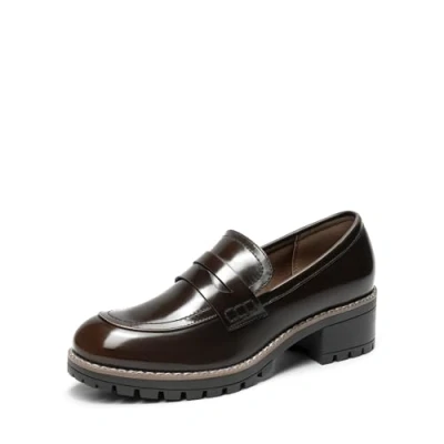 DREAM PAIRS Womens Moccasin Loafers, Slip On Platform Chunky Penny Heeled Loafers for Women Dressy and Work, Business Casual Shoes,Size 8,Brown Pu,SDLS2319W