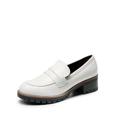 DREAM PAIRS Womens Moccasin Loafers, Slip On Platform Chunky Penny Heeled Loafers for Women Dressy and Work, Business Casual Shoes,Size 8,White Pu,SDLS2319W