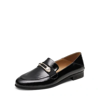 DREAM PAIRS Womens Penny Loafers Slip on Low Heel Oxfords Pearl Buckle Moccasins Smart Work Office Flats Shoes Black,Size 6.5,Black/Patent/Leather,SDLS2207W