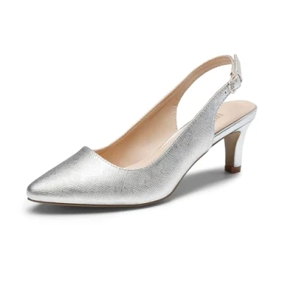 DREAM PAIRS Womens Slingback Sandals Pumps Pointed Toe Dress Party Court Shoes Ladies Kitten Heel Wedding Shoes,Size 7,Silver PU,SDHS2234W E