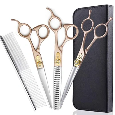 Dream Reach 7 Inches Professional Pet Grooming Scissors Set, 440C Japanese Steel Straight & Curved Thinning Chunker Shears/Scissors Kit for Dog Cat and More Pets (7 inch Set 02)