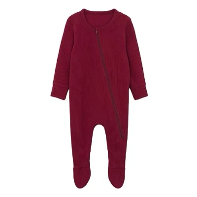 DreamBuy Zip Up Baby Sleepsuits Ribbed Cotton Footed or Footless. Unisex Newborn clothes boys' clothing and girl (0 3 months, Claret Red)