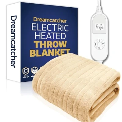 Dreamcatcher Cream Heated Throw Electric Blanket, 160 x 120cm Blanket Machine Washable Soft Fleece Overblanket with 12HR Timer and 9X Control Heat Settings