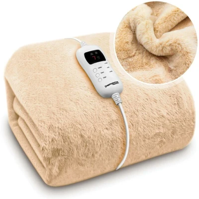 Dreamcatcher Electric Blanket Faux Fur Heated Throw 160x130cm Machine Washable Thermal & Timer 9 Heat Settings Natural
