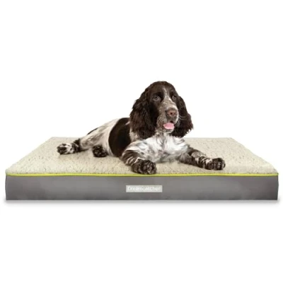 Egg Crate Foam: The Grey Dreamcatcher orthopedic dog bed delivers unmatched support for a deep restful sleep, featuring a 9cm egg crate high-density foam base which evenly distributes weight & relieves pressure. This design contours to your dog’s body, providing essential support for their joints and bones, enhancing overall comfort and well-being. With a perfect balance of softness & support, it's especially beneficial for helping to alleviate joint pain and ensuring a dreamy sleep experience. Material: The Dreamcatcher large dog bed features a premium orthopaedic egg crate foam base, expertly designed to contour and conform to your pet’s body shape, providing targeted support for joints, muscles, and pressure points to ensure maximum comfort and improved sleep quality. The ultra-soft, luxurious sherpa fleece surface adds an extra layer of coziness, offering a plush and inviting texture that keeps your dog warm and snug, making this bed the perfect choice for older pets, dogs with arthritis, or any pup that deserves a restful, supportive place to relax. Dual Design & Versatile: The Dreamcatcher dog bed large as a reversible design with super soft fleece for winter and cool oxford fabric for summer. Fits most common sized crates, or can be used as a pet bed in any room or car. Flip between the cosy sherpa side for the colder months and the cooler oxford side for the warmer months for all year round comfort for your pet. Machine Washable Dog Bed: Easily remove the zippered cover for machine washing in cold water. Our dog beds medium washable has a removable cover with one zippers for the egg crate foam insert. To clean, simply take out the foam insert and wash the cover in the machine. Please note that the egg crate foam insert are not washable. Enjoy hassle-free maintenance for your pet’s bed. Exceptional UK Customer Service: With our outstanding customer support we are here to assist you. If you have any questions, feel free to reach out to us. Please note: The dog bed large will arrive tightly vacuum packaged, please allow the dog bed egg crate foam to expand for 24-48 hours after unpacking. Size 91x69x9cm.