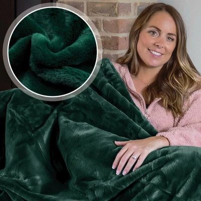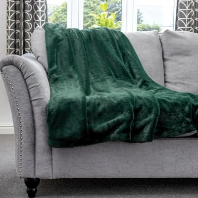 Dreamcatcher Luxurious Green Faux Fur Throw Blanket 160 x130cm, Large Blankets and Throws Fleece Blanket, Ideal Fluffy for Sofas, Beds, Chairs Couch