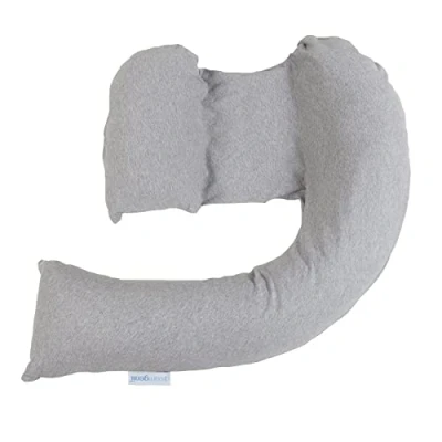 dreamgenii Pregnancy Support and Feeding Pillow, For Left Lateral Sleeping in Beyond With Removable, Washable Cover Grey Marl Cotton Jersey