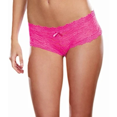 Dreamgirl Women's Stretch Lace Low Rise Cheeky Hiphugger Panty with Scalloped and Satin Bow Trim, Hot, Pink, X Large
