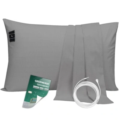 DREAMIEE Healthy Grounding Pillowcase 20x36in Gray with 15ft Connection Cord EMF Protection