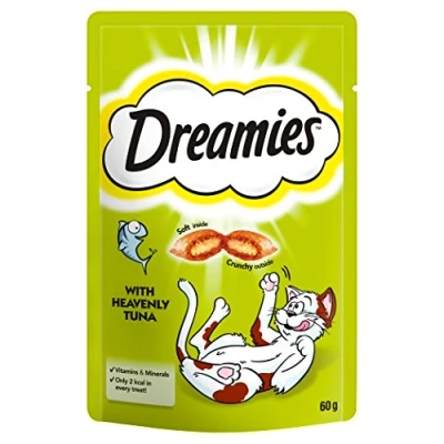 Dreamies Cat Treat Biscuits with Tuna Flavour are a healthy, 2 kcal treat with a crunchy outside and soft inside, enriched with essential vitamins and minerals. Made without artificial additives and packed in a resealable bag for freshness, they’re a delicious, guilt-free snack for cats.