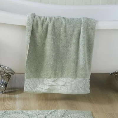 Dreams & Drapes Green Leaf Bath Towel (90 x 150cm) 100% Cotton Very Soft Touch Botanical Vintage in Leaves Towel/Bath Sheet Sage Bathroom Accessory