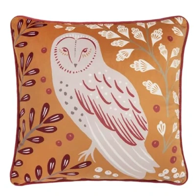 These stunning enchanted owl cushions will look fabulous in any room. Fully reversible, one side features a red velvet background & the other, a stunning gold. The cushions are also piped for the perfect finishing touch Dreams & Drapes is a trusted quality UK bedding brand, the Lodge range presents beautiful printed bedding made with heavyweight brushed cotton for a warm, snug feeling. 43 x 43cm square cushion with filling pad( Zip opening to allow removal of filling pad) Fabric: 100% Polyester & 100% Polyester filling pad Pack Contents: 1 x Cushion (with 100% polyester filling pad) . Complete the look by buying the matching Dreams & Drapes Lodge Enchanted Red Zip Closure