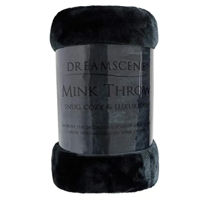 Dreamscene Luxury Faux Fur Mink Fleece Throw Over Sofa Bed Soft Warm Blanket, Black, 125 x 150cm