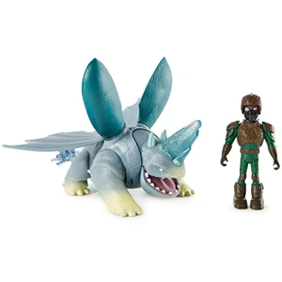 This set includes the dragon Plowhorn (German: Rammhorn) and Rider D'Angelo from the animated series Dreamworks Dragons "The 9 Worlds" (original title: The Nine Realms) The D'Angelo rider figure shows realistic details, plus head, arms and legs can be moved, dragon plowhorn has movable wings and joints The dragon figure is approx. 20 cm long, the rider figure approx. 9 cm high. Great collecting fun with the DreamWorks Dragons "The 9 Worlds" adventure sets: in addition to D'Angelo and Plowhorn there are also Alex and Feathers (German: Feather), as well as Tom and Thunder (German: Donner) to discover Contents: 1 dragon, 1 figure The DreamWorks Dragons "The 9 Worlds" Adventure Set with the D'Angelo and Plowhorn figure is a great gift for children and dragon trainers aged 4 and up, Manufacturer: Spin Master