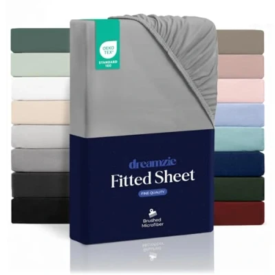 Dreamzie Fitted Sheet 140 x 200 cm (35 cm) Ultra Soft Microfibre Thick Mattress Oeko Tex Comfort, Breathable, Easy Care Grey