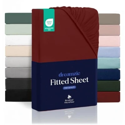 Dreamzie Fitted Sheet 180 x 200 cm for Thick Mattress up to 33 100% Polyester Microfibre Bordeaux Certified Chemical Free (Oeko Tex), with Full Elastic