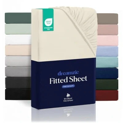 Dreamzie Fitted Sheet 90 x 190 cm for Thick Mattresses up to 33 100% Polyester Microfibre Beige Certified Chemical Free (Oeko Tex), with Full Elastic