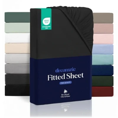 Dreamzie Fitted Sheet 90 x 200 cm for Thick Mattresses up to 33 100% Polyester Microfibre Black Chemical Free Certified (Oeko Tex), with Full Elastic