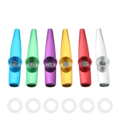 [Vibrant & Durable Metal Kazoos]: This set includes 6 colourful metal kazoos (silver, gold, green, red, purple, black) made from high-quality aluminium—lightweight yet sturdy, with polished edges for safety. Perfect for everyone, they deliver a bright, resonant sound and resist wear over time. [No Skills Needed]: Hum and play instantly—no practice or musical theory required! These kazoos produce a saxophone-like buzz with just your voice, making them ideal for beginners, parties, or jam sessions with guitars, ukuleles, or pianos. [Complete Set with Spare Membranes]: Each pack comes with 12 replaceable flute membranes, ensuring long-term use. The interchangeable parts let you tweak sound quality, while the compact size (12cm long) fits pockets or gift bags effortlessly. [Perfect Gift for Music Lovers]: A hit for Christmas, Halloween, or birthdays! Loved by everyone, these kazoos are non-toxic, smooth-edged, and packaged ready for gifting. Great as party favours, classroom prizes, or stocking stuffers. [Portable & Versatile for Any Occasion]: Take your music anywhere! The lightweight design (13g per kazoo) and vibrant colours make them ideal for travel, concerts, or family gatherings. Pair with other instruments or enjoy solo—endless creative possibilities.