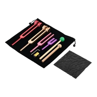 [Tuning Fork Set]: You will receive an attractive storage bag containing 4 tuning forks (128Hz, 136.1Hz, 528Hz, and 4096Hz), equipped with 2 hammers and an Allen key. Tuning forks for healing are made from aluminum alloy, accurately tuned to within .5% of the indicated frequency, and have a clear, long-lasting tone resonating deeply throughout your whole body, aiding your physical, emotional, and spiritual well-being. [128Hz Tuning Fork]: Otto Tuner (Weighted) for hearing tests, neurology exams, pain relief, and relaxation. Use on any bone, joint, muscle, nerve, or any body part to resonate and stimulate the nervous system, releasing nitric oxide to reduce inflammation, muscle spasms, and improve circulation. Hold it to your ears for deep relaxation and peace. [136.1Hz Tuning Fork]: Ohm Tuner (Weighted) for meditation and relaxation. Place it by the ears or on joints, muscles, and nerve groups to relax the body, release stress, and prevent illness. Use it on knees and feet for grounding. [528Hz Tuning Fork]: MI 528 is the best Solfeggio frequency biofield tuning which has a very relaxing effect on mind and body. 528Hz is used to repair and rejuvenate damaged DNA - our genetic building blocks - increase energy flow to enhance your nervous, immune, and circulatory systems, which is beneficial for balancing and tuning Chakra in our body. [4096Hz Tuning Fork]: 4096C Otto Tuner/crystal tuner/angel tuners/biofield tuning is quite high-pitched, which helps to open your mind to new ideas and provides increased receptivity. By vibrating your cranial bones or placing it by the ears, the Angel Tuners open the gateway for spiritual insights and experiences. It is also used for space and crystal clearing.