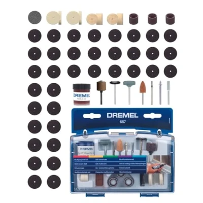 The Dremel 687 kit boasts a variety of essential accessories, including: