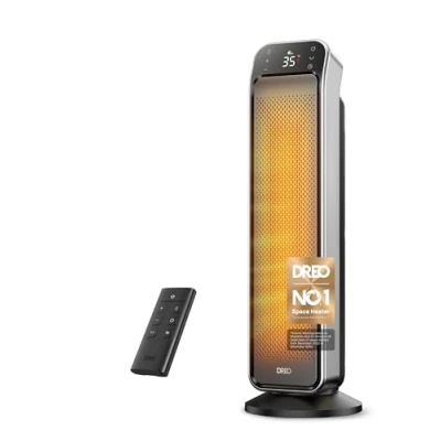 The Ultimate Heating Experience: Dreo's upgraded 25" ceramic space heater brings 11.5 ft/s fast heat thanks to its new hyperamics thermal design, while the extended impeller doubles the heat range making it the ideal space heater for large rooms and warmer winters. Unbreakable Safety: This room heater for indoor is fully packed to safely warm up your winter. Built with V0 flame retardant material, reinforced plug, 45° tip-over and overheat protection. An additional child lock setting reduces the risk of accidents, making safer to heat and more secure to use. Warm Your Nights in Absolute Quietness: Dreo's new airflow design brings down noise as low as 25dB, making this space heater for bedroom an ideal option to blow a comfortable warm air quietly, and enjoy a quiet, disturbance-free office or a good night's sleep. Precise Temperature Control: Set room temperature with more accuracy than ever before, this space heater with thermostat uses a dedicated thermal sensor to gauge the room temp and adjust heating automatically in ECO Mode, temperature can be set between 5-35℃ with 1℃ precision for ideal comfort. Expanded Heating Capabilities: Bring warm air to every corner of your room. This portable space heater with 70° Wide Angle oscillation can easily cover areas of 9-25 m². Choose from four heating modes (H1/H2/H3/ECO) according to your needs, and even use it as a fan to circulate the air when the room is too hot., Weight: 7.26 pounds, Manufacturer: Dreo