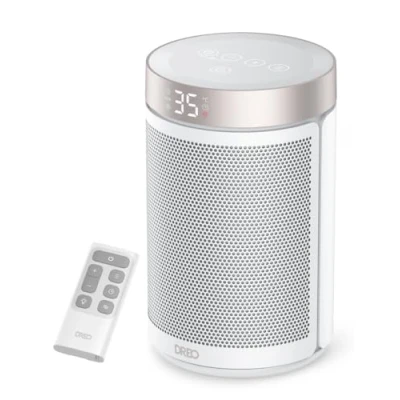 𝙋𝙤𝙬𝙚𝙧𝙛𝙪𝙡 𝙝𝙚𝙖𝙩 𝙩𝙝𝙖𝙩 𝙛𝙞𝙩𝙨 𝙚𝙫𝙚𝙧𝙮𝙬𝙝𝙚𝙧𝙚: Dreo space heaters for indoor combines Hyperamics 1500W advanced PTC system with a new heat funnel design to deliver heat within seconds and enhance warm air circulation for up to 200% farther reach than traditional heaters. 𝙐𝙣𝙗𝙧𝙚𝙖𝙠𝙖𝙗𝙡𝙚 𝙨𝙖𝙛𝙚𝙩𝙮: Dreo goes beyond the unexpected to deliver peace of mind with every room heater. The innovative tilt-detection sensor improves accuracy and reliability for better tip-over protection, and built with V0 flame retardant materials, overheat protection, and safety plug. 𝙐𝙡𝙩𝙞𝙢𝙖𝙩𝙚 𝙩𝙚𝙢𝙥𝙚𝙧𝙖𝙩𝙪𝙧𝙚 𝙘𝙤𝙣𝙩𝙧𝙤𝙡: The enhanced NTC chipset brings more precision to turn your space heater with thermostat into a smart heating powerhouse, allowing you to set heat on a wider range from 5-35℃ with ±1℃ increments, saving you energy while keeping you comfortable. 𝘾𝙤𝙯𝙮 𝙦𝙪𝙞𝙚𝙩𝙣𝙚𝙨𝙨: No more choosing between quiet or warmth, Dreo's heater for bedroom warms quietly thanks to its brushless DC motor with frictionless performance and a winglet fan design that reduces turbulence, reducing noise to only 34dB. 𝙁𝙞𝙩𝙨 𝙞𝙣𝙩𝙤 𝙮𝙤𝙪𝙧 𝙡𝙞𝙛𝙚𝙨𝙩𝙮𝙡𝙚: This portable heater handle makes it easier to carry and is equipped with multiple heating levels and modes to heat as you like (Power heat, ECO, Fan Only). It also features handy extras for a hassle-free experience (12-hour timer, mute, child lock, and memory function)., Weight: 3.0423792156 pounds, Manufacturer: Dreo
