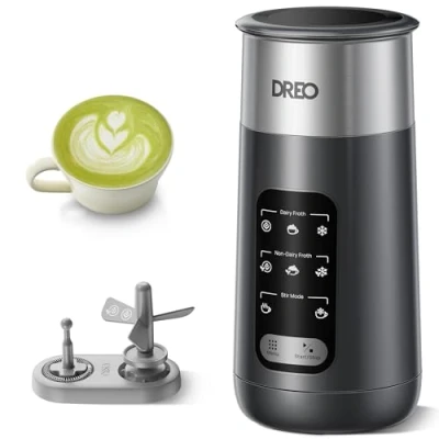 8-๐๐ฃ-1 ๐๐ค๐ง ๐๐ฃ๐๐ก๐๐จ๐จ ๐๐ง๐๐ฃ๐ ๐จ: This 8-in-1 frother lets you enjoy coffees, shakes, and more. The Impeller creates silky microfoam for latte art, while the Disc makes thick foam and stirs powder drinks. ๐พ๐๐๐-๐ฆ๐ช๐๐ก๐๐ฉ๐ฎ, ๐๐ฃ๐ฎ๐ฉ๐๐ข๐: The patented impeller blade cuts large bubbles into silky microfoam, 0.5mm fineโhalf the size of regular ones. It creates thick foam 4x richer, lasting 5 mins. (Note: Only the small disc at the bottom of the impeller rotates during frothing.) ๐๐ช๐ก๐ฉ๐-๐ข๐๐ก๐ ๐ฉ๐ฎ๐ฅ๐๐จ, ๐๐ก๐๐ญ๐๐๐ก๐ ๐๐๐ฅ๐๐๐๐ฉ๐๐๐จ: From dairy to non-dairy like almond, soy, and oat, this frother creates silky, smooth froth. With a 270ml stirring capacity, 170-190ml for latte art, and up to 120ml for thick foam, itโs ready for all your frothing needs. ๐๐ค ๐ข๐ค๐ง๐ ๐๐ช๐ง๐ฃ๐ฉ ๐ข๐๐ก๐ : With a multi-stage frothing program, this frother expertly controls temperature, time, and speed. The impeller tipโs special bottom design prevents scorching for the smoothest froth. ๐๐ค๐ง๐ ๐๐๐๐ฉ๐ช๐ง๐๐จ, ๐ข๐ค๐ง๐ ๐๐ก๐๐ญ๐๐๐๐ก๐๐ฉ๐ฎ: Enjoy ultimate convenience with this easy-to-clean stainless steel frother. Its waterproof, non-stick design makes cleanup a breeze. With an LED screen and intuitive buttons, crafting barista-quality drinks is one touch away., Weight: 1.6 Pounds, Manufacturer: Dreo