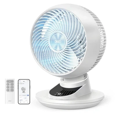 𝑾𝒉𝒐𝒍𝒆-𝒓𝒐𝒐𝒎 𝑨𝒊𝒓𝒇𝒍𝒐𝒘 𝑷𝒐𝒘𝒆𝒓: TurboWind tech ensures whole-room circulation, delivers up to 950 CFM airflow and sends air up to 85 ft, cooling a 270 sq ft room in 1 min, ideal for home or office 𝟯𝘿 𝘼𝙪𝙩𝙤 𝙊𝙨𝙘𝙞𝙡𝙡𝙖𝙩𝙞𝙤𝙣: Featuring 90° vertical & horizontal oscillation, this fan circulates air throughout the whole-room, leaving no-heat spots, only cool comfort 𝙌𝙪𝙞𝙚𝙩, 𝙀𝙣𝙚𝙧𝙜𝙮-𝙎𝙖𝙫𝙞𝙣𝙜 𝙋𝙚𝙧𝙛𝙤𝙧𝙢𝙖𝙣𝙘𝙚: Powered by its Next-Gen Brushless DC Motor, the fan runs as low as 20 dB for restful nights while boosting energy savings for up to 20% 𝙎𝙢𝙖𝙧𝙩 𝙀𝙘𝙤𝙨𝙮𝙨𝙩𝙚𝙢 𝙄𝙣𝙩𝙚𝙜𝙧𝙖𝙩𝙞𝙤𝙣: Control your desk fan from anywhere via the DREO app or Alexa/Google Home/Siri, and easily sync it with your smart home. Includes 12hr timer, child lock, power-off memory, and 60-sec auto screen-off for total worry-free comfort 𝙈𝙪𝙡𝙩𝙞𝙥𝙡𝙚 𝘾𝙪𝙨𝙩𝙤𝙢𝙞𝙯𝙖𝙗𝙡𝙚 𝙈𝙤𝙙𝙚𝙨: Choose from 6 airflow modes and 9 speed settings to match any season and personalize comfort. The table fan pairs perfectly with other DREO appliances such as heaters, coolers, and humidifiers for year-round comfort, Weight: 3.968320716 pounds, Manufacturer: DREO