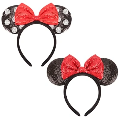 Amazon Well made: DRESHOW mouse ears headband adopted high-quality handmade materials. Featuring shining sequins on both sides, this hair hoop was decorated with Mouse ears and a cute bow, stretchy, soft, and comfortable. Firm and durable: Mouse Ears and bow are firmly attached to the headband. The strong headband, thick and erect ears, and fine workmanship guarantee its durability and wearability. Size: Headband width: 4.7", crown width: 9"; With highly elastic plastic, these cute Mouse ears headbands are one size fits most, applicable for most women, which can stretch pretty far to accommodate any size head or hairstyle. This product is intended for adults aged 16 and older only. Occasions: Bright colors and big ears make the Mouse ears headbands very cute and eye-catching. Perfect for Disneyland, Halloween, Christmas, Easter Day, birthday party, cosplay costume, photograph props, or whimsical everyday wear. Package: 2 pieces of glitter sequin bow head hands in one parcel, multi styles for you to choose. Please feel free to contact us if there is any problem.