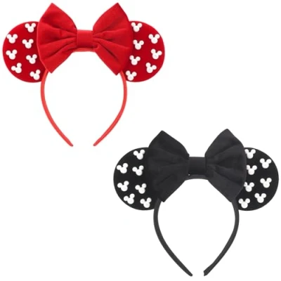 DRESHOW 2 Pack Mouse Ears Bow Headbands Glitter Party Decoration Cosplay Costume for Women