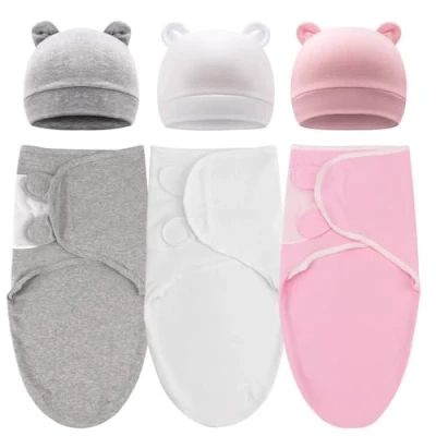 DRESHOW 3 Pack Newborn Swaddle Blanket with Hats Baby Swaddles Infant Adjustable Sleep Sack for 0 Months Girls Boys