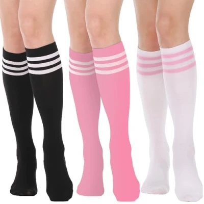 Amazon SOFT AND STRETCHY. These women knee high socks from DRESHOW ARE crafted from quality polyester blends, which are soft, flexible, comfortable, durable, and breathable. The good elasticity makes you feel comfortable all day long. GREAT VALUE choices. Each package has 3 pairs of knee socks, multi-color for you to match your different look and occasion. Fresh solid color and stripe, super cute long stockings with shorts and skirts. The black high socks also provide a visual slimming effect. STYLE DIVERSITY: These tube socks are in Minimalist, Classic, Vintage, Casual and Sporty style, which means you can be Cute and Stylish with the multicolored high socks. Vary the length of your colorful socks to fit different outfits. VERSATILE: The striped socks are suitable for daily wearing, cosplay party, dancing, out activity, school, yoga, and any other occasions. Cute knee high stockings add a playful touch to your look when worn with boots, skirts, shorts, and uniform. The must-haves are ideal gifts for girls and women. SIZE: Suitable for Women's shoe size 5-10.