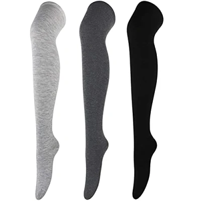 DRESHOW 3 Pairs Over Knee Thigh High Socks Casual Stockings Long for Girl and Women