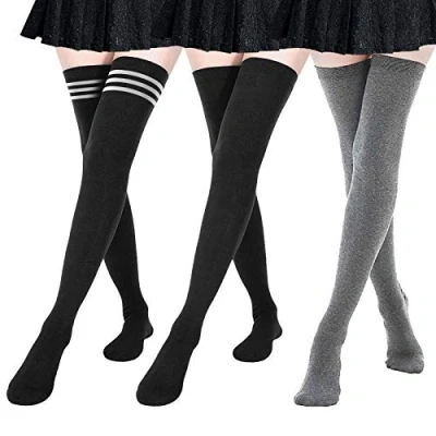DRESHOW 3 Pairs Women Extra Long Thigh High Socks Thin Stripes Tube Tights Over Knee Casual Boot Stockings
