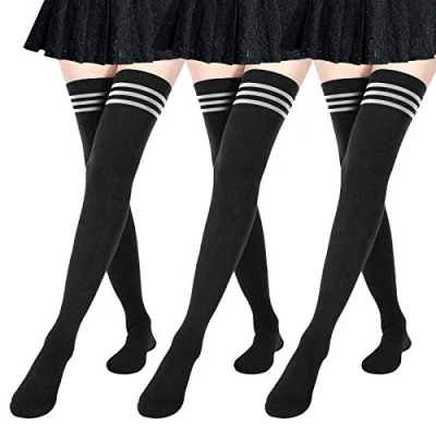 DRESHOW 3 Pairs Women Extra Long Thigh High Socks Thin Stripes Tube Tights Over Knee Casual Boot Stockings