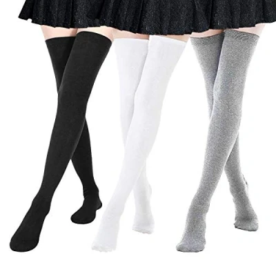 Size: the length from top heel is about 68cm, and toe to heel is about 19cm; with good elasticity, and the maximum of the socks can be stretched to about 29cm; if you have any other questions, please contact us and we will reply you as soon as possible Our knee high socks are made from soft and comfortable poly-cotton blends, which is breathable and comfortable. They have good elasticity and will not fall down. can be matched with most clothes, suitable for daily wearing, cosplay, dancing and yoga; ideal gifts to send to girls and women Wide range of wearing ways: put them over your knees to keep your knees warm; wear them below your knees and over your calves to have a faddish feeling; you can also push down the thigh-high length tube socks around the ankles as popular loose socks Super cute with shorts and mini skirts, which show your youthful vigor and spike your confidence. You can also wear them under the knees as piles of socks, natural and casual; Sweet, elegant and cute socks can be worn with mini skirts and shorts, comfortable and breathable, smooth and skin-friendly; suitable for wearing in 4 seasons, wearing in spring is comfortable, wearing in an air-conditioned house in summer can protect your knees, wearing in autumn is cool and beautiful, and wearing in winter can keep warm