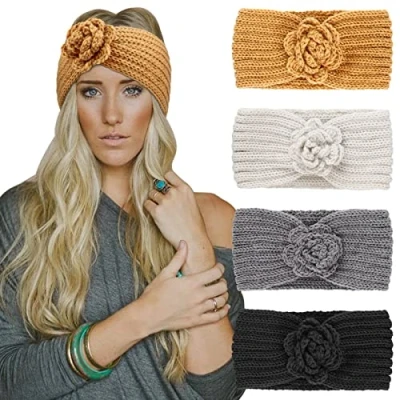 This warm chunky cable knitted headband is made of 100% Acrylic wool. Crocheted turban style headband keep those ears warm with this bulky crocheted head band. A thick and cozy croched ear warmer headband featuring an adorable country. Chic crochet detail a crocheted knot in the center. It fits average teen or adult head of 20-23 inches in circumference. It's just the right size to be cozy and warm on chilly winter nights but effortless and breezy throughout the day. Crafted from vegan, itch free acrylic yarn. This headwrap creates the perfect wintry boho vibe and is the ultimate piece to slip on and accentuate loose curls or messy bun. Package: 4 crocheted headbands.
