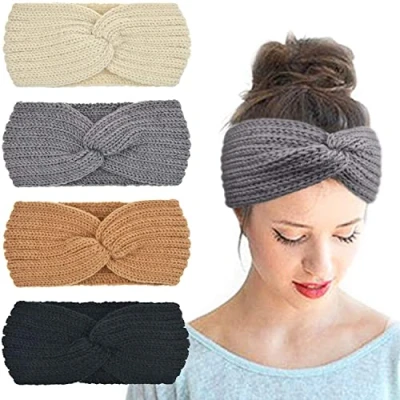 This warm chunky cable knitted headband is made of 100% Acrylic wool. Crocheted turban style headband keep those ears warm with this bulky crocheted head band. A thick and cozy croched ear warmer headband featuring an adorable country. Chic crochet detail a crocheted knot in the center. It fits average teen or adult head of 20-23 inches in circumference. It's just the right size to be cozy and warm on chilly winter nights but effortless and breezy throughout the day. Crafted from vegan, itch free acrylic yarn. This headwrap creates the perfect wintry boho vibe and is the ultimate piece to slip on and accentuate loose curls or messy bun. Package: 4 crocheted headbands.